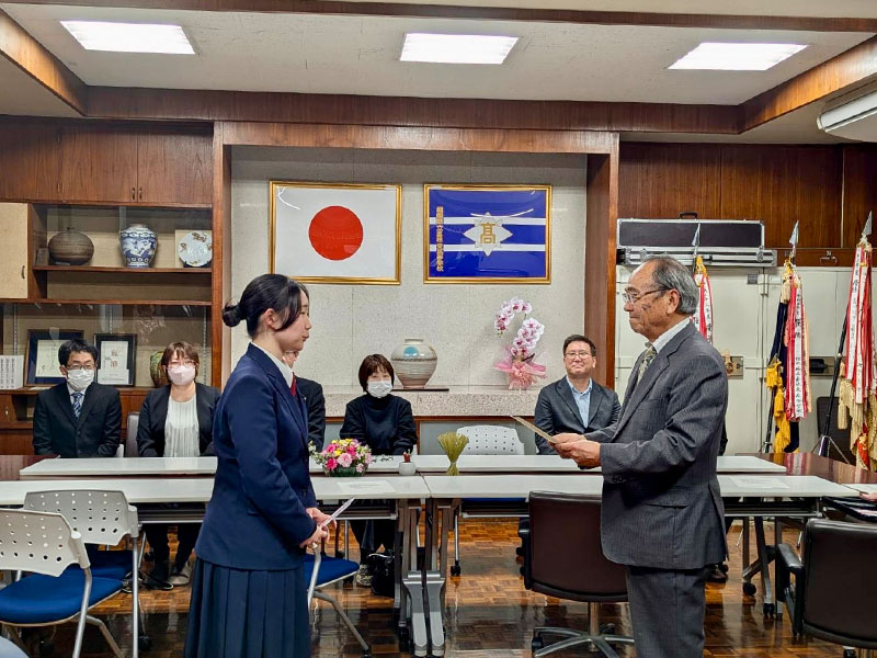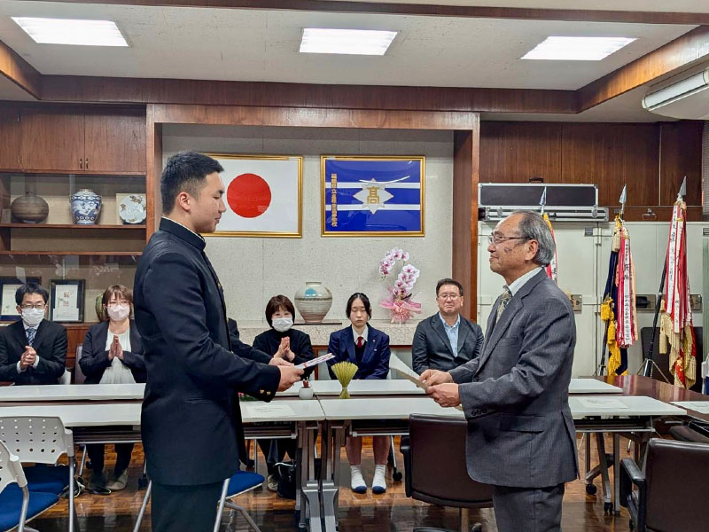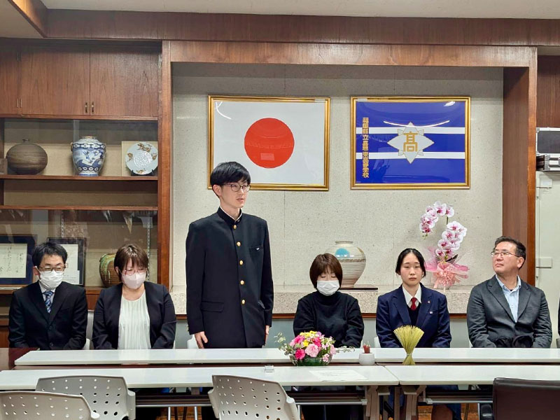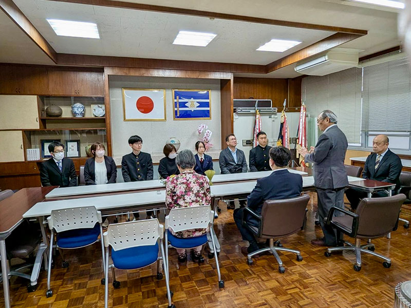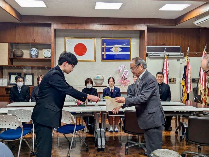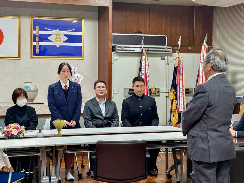 2026年3月12日(木)に嘉穂東高校同窓会給付型奨学金の授与式が母校校長室で行われました。この奨学金制度は、平成27年に創設され、同窓会会員の寄付金「スクールサポーター基金」により実現されており、今年で12回目を迎えます。